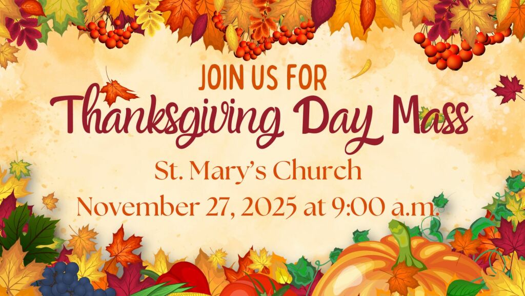 If you are new to the area or just passing through, we cordially invite you to make St. Mary's your spiritual home. After Mass, please introduce yourself to our pastor, Fr. Mark Sauriol, or contact the parish office. Your prayers, time, talent, and treasure all contribute to our ability to be a vibrant presence in our community.